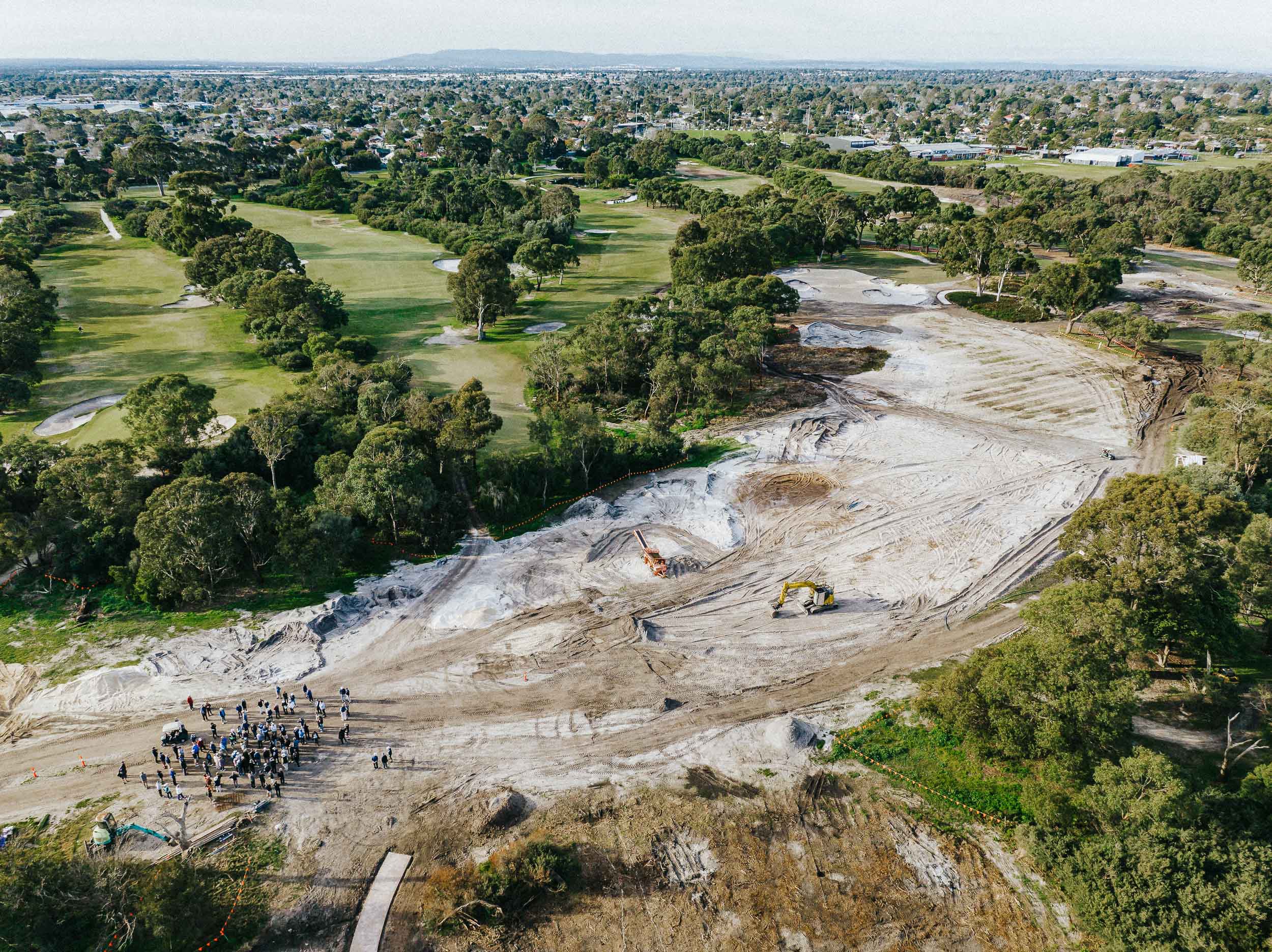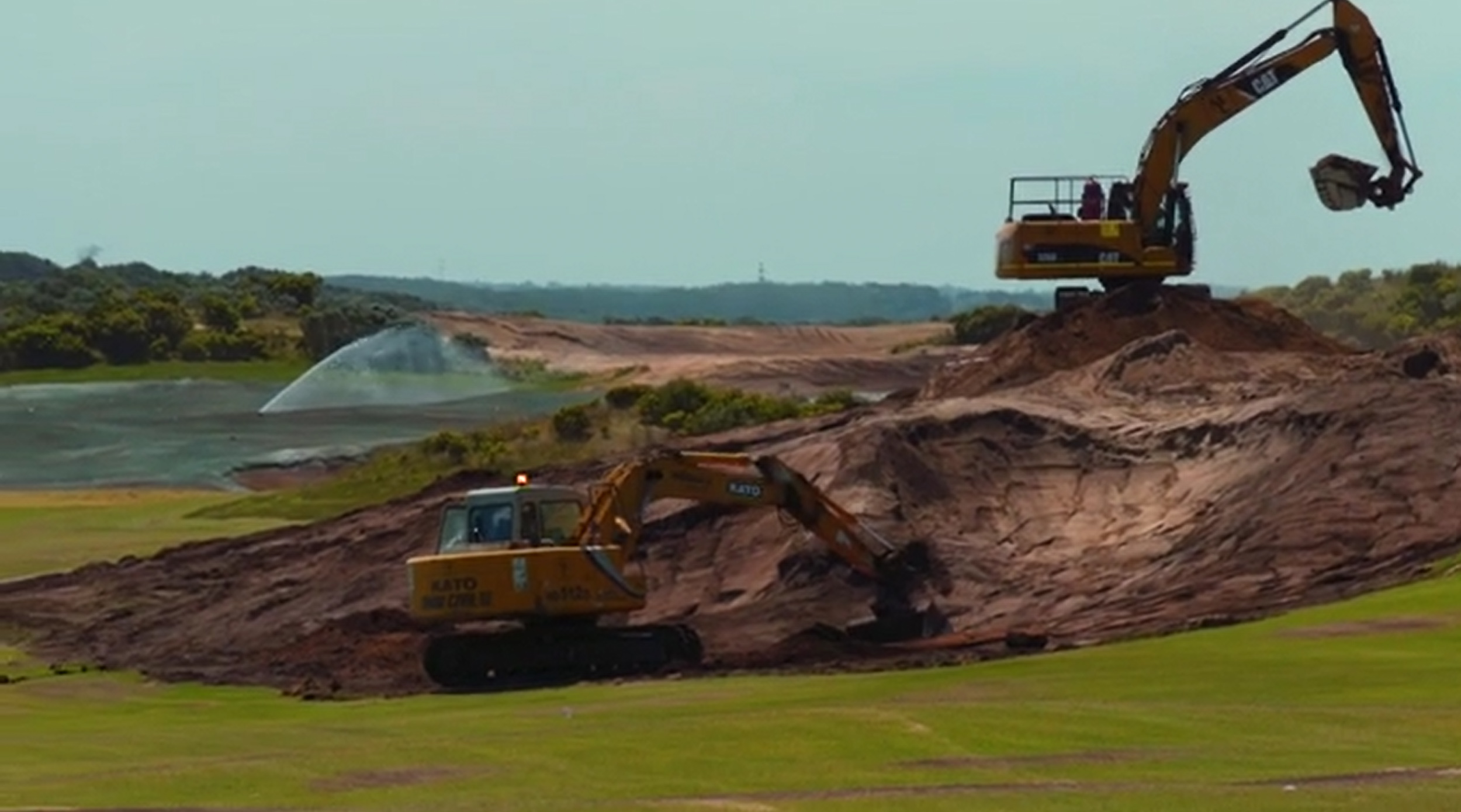 Early in April 1985 bulldozers moved on site and commenced their mammoth task of moving a million tonnes of earth to build two golf courses and a residential development. Priority was given to the Cape Schanck public course and residential development of 210 sites on the perimeter.