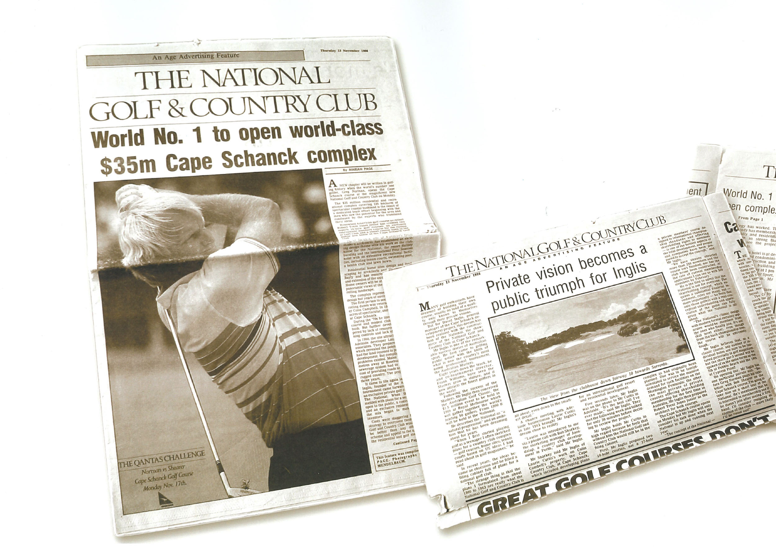 With the bold slogan “A New Direction in Australian Golf”, The National was launched to the public in a hospitality tent at Huntingdale Golf Club during the Masters Tournament in February 1985. A scale model of the proposed development at Cape Schanck was on display, along with literature and spectacular photography of the site. Word spread quickly as no new private golf club had been formed in Melbourne in about 60 years, and the shareholder equity aspect was unique in Australia.